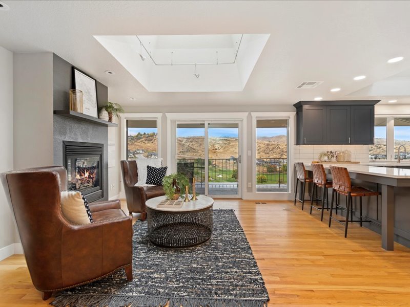 This home exudes quality with a durable copper roof and gleaming hardwood floors. The main floor master suite offers convenience and luxury, complete with a walk-in shower. A large office with a custom wood door provides a perfect space for work or quiet contemplation.